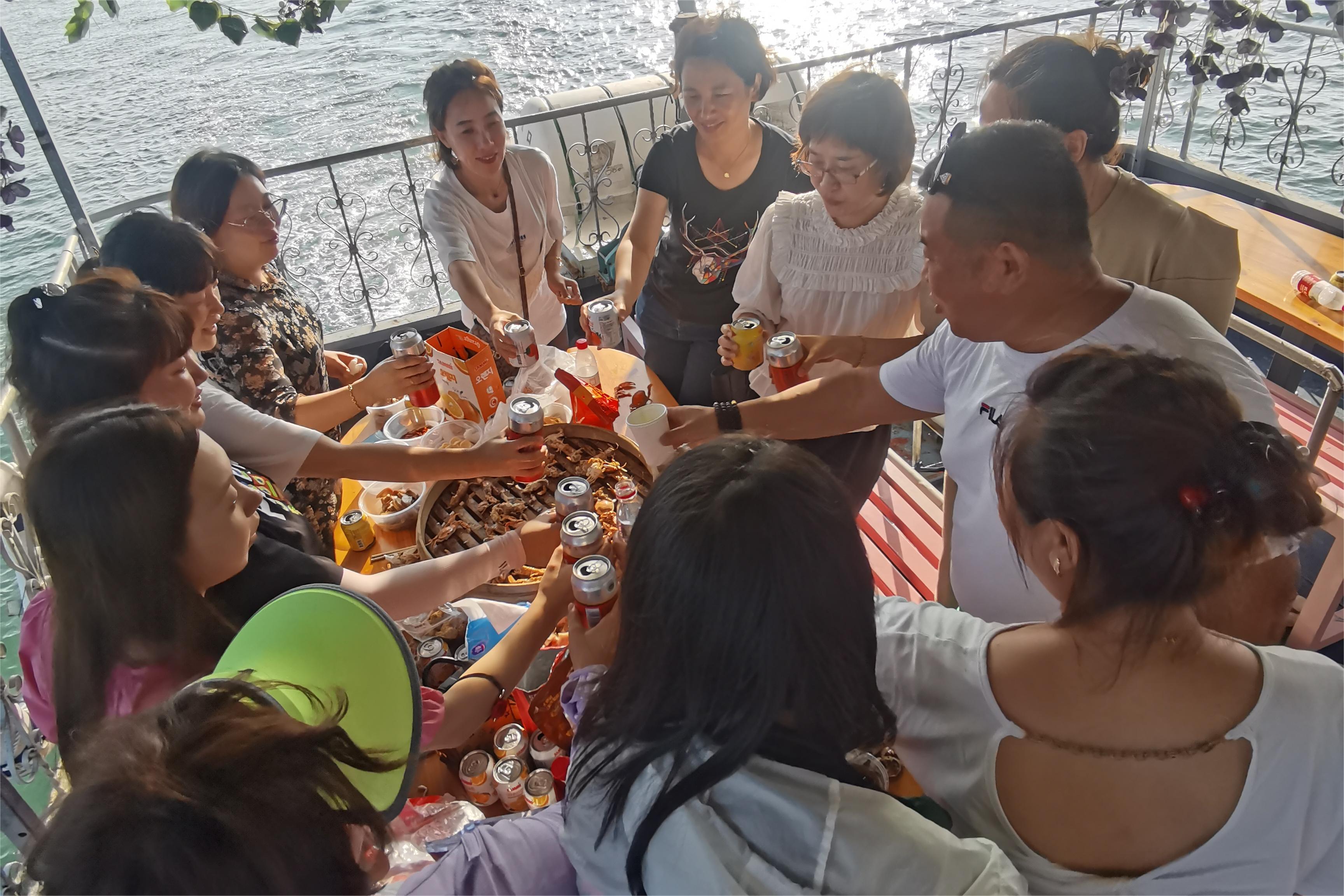忙碌充实的一年已过半,为了丰富集体生活,凝聚你我,快乐前行,在徐方国董事长的提议下,公司组织了一场乘游船出海捕鱼的团建活动。放飞心情,提升活力,轻松出发前往美丽的月牙湾-鲅鱼圈金泰码头。7月的鲅鱼圈阴雨连绵,我们团建的时万里无云,艳阳高照,正如我们的心情一样阳光而快乐。
