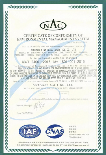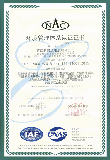 环境管理体系认证证书(中)