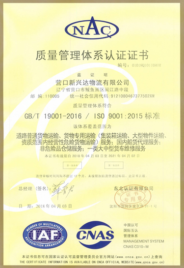 质量管理体系认证证书(英)