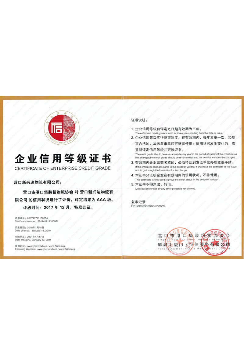 企业信用等级3A
