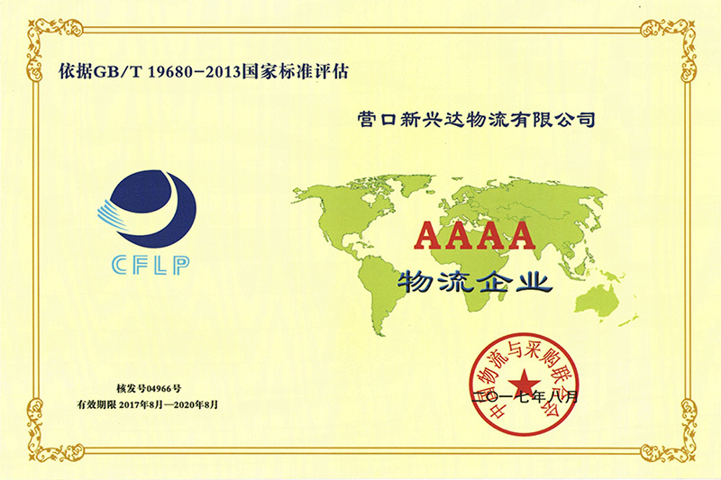 2015年8月5日我司首次申报并成功通过全国第二十批(营口市第五批)A级物流企业考核,级别为3A级综合服务型物流企业。2017年8月3A升级4A成为4A级综合服务型物流企业。